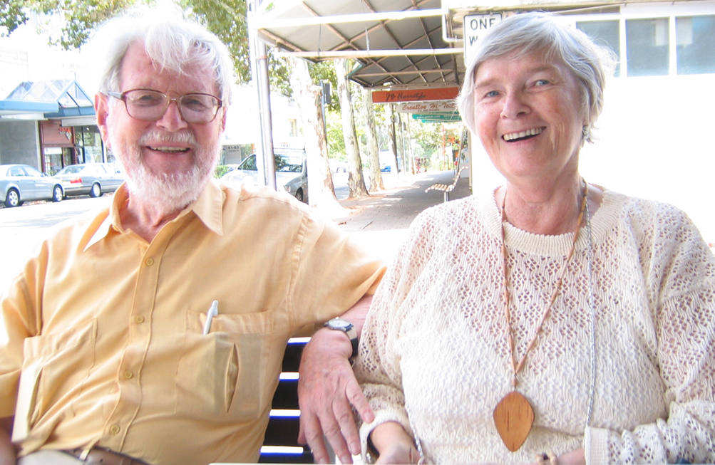 Click on the image above to enlarge it. Tiiu Salasoo, then Jalak, is the laughing teenager standing at the end of the row on the left side in the group photo of the Estonian Men's Choir and its well-wishers. The Choir was about to leave Bonegilla Camp as a group to work for the Masonite company near Newcastle, NSW, in January 1948. (Photo from the collection of Viktor Valk.) Right, Tiiu with husband Inno Salasoo in April 2010. (Photographer, Arja Perendi.) |  | | | | |